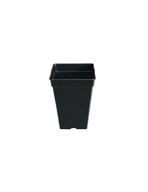 Maceta de plástico resistente ideal para crecimiento inicial y floración en espacios reducidos.