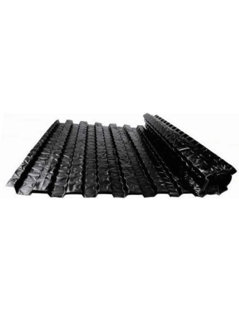 Bandeja flexible y resistente para recogida de drenaje en cultivos.