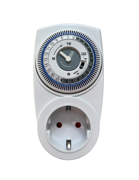 Permite encender y apagar un dispositivo de forma programada, fácil de usar para iluminación o ventilación.