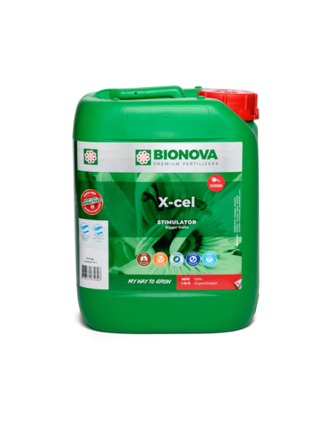 X-Cell de Bionova es un estimulador que potencia la absorción de nutrientes, mejora la actividad radicular y favorece un desarrollo equilibrado de la planta. Formulación profesional para cultivos en sustrato o hidroponía.