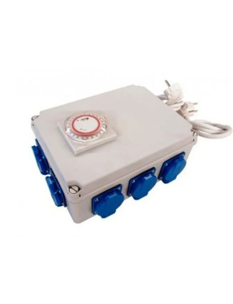 Dispositivo programable para el control de 8 salidas independientes. Permite automatizar equipos eléctricos de manera eficiente, optimizando consumo y funcionamiento. Ideal para cultivos, iluminación o ventilación.