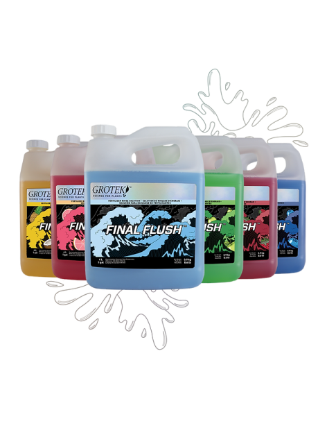 FINAL FLUSH™ elimina el exceso de sales del medio de cultivo para asegurar una cosecha con sabor más limpio y aroma mejorado, promoviendo frutos de máxima calidad.