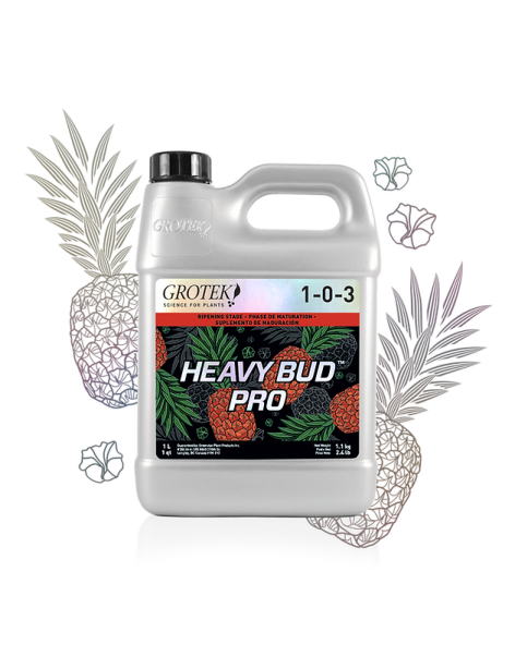 HEAVY BUD PRO™ está diseñado para mejorar la calidad en cultivos de alto rendimiento, potenciando el sabor, aroma y la densidad de las flores durante las etapas medias y tardías del desarrollo.