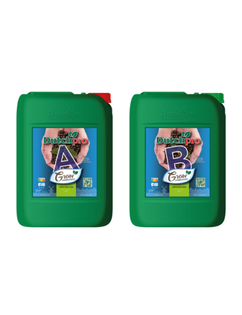 Base nutritiva en dos partes para fase vegetativa en hidroponía y coco con agua dura, asegurando crecimiento uniforme y fuerte.